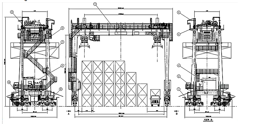The rubber tyre container gantry crane of is according to the standards of GB/T15362, and ISO standards. The lifting capacity of the container gantry crane is 20 to 45 tons.